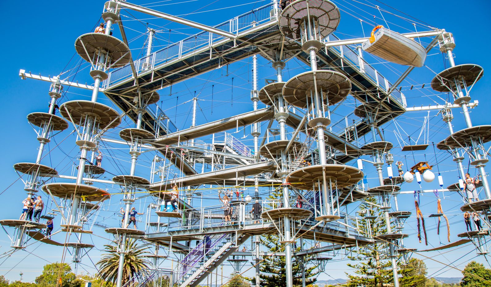 Launching from 18m in the air, the giant swing at West Beach Adventure reaches speeds of up to 70km/h. Which is a great way to start a fun day of aerial challenges.