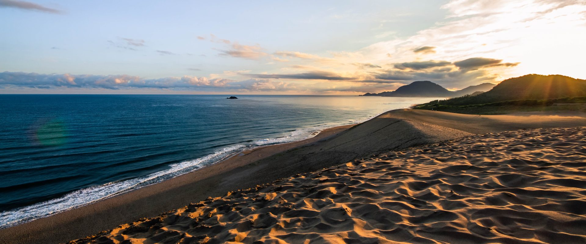 Part of the San’in Kaigan UNESCO Global Geopark, the Tottori Sand Dunes span 16km and stretch to heights of 90 meters.