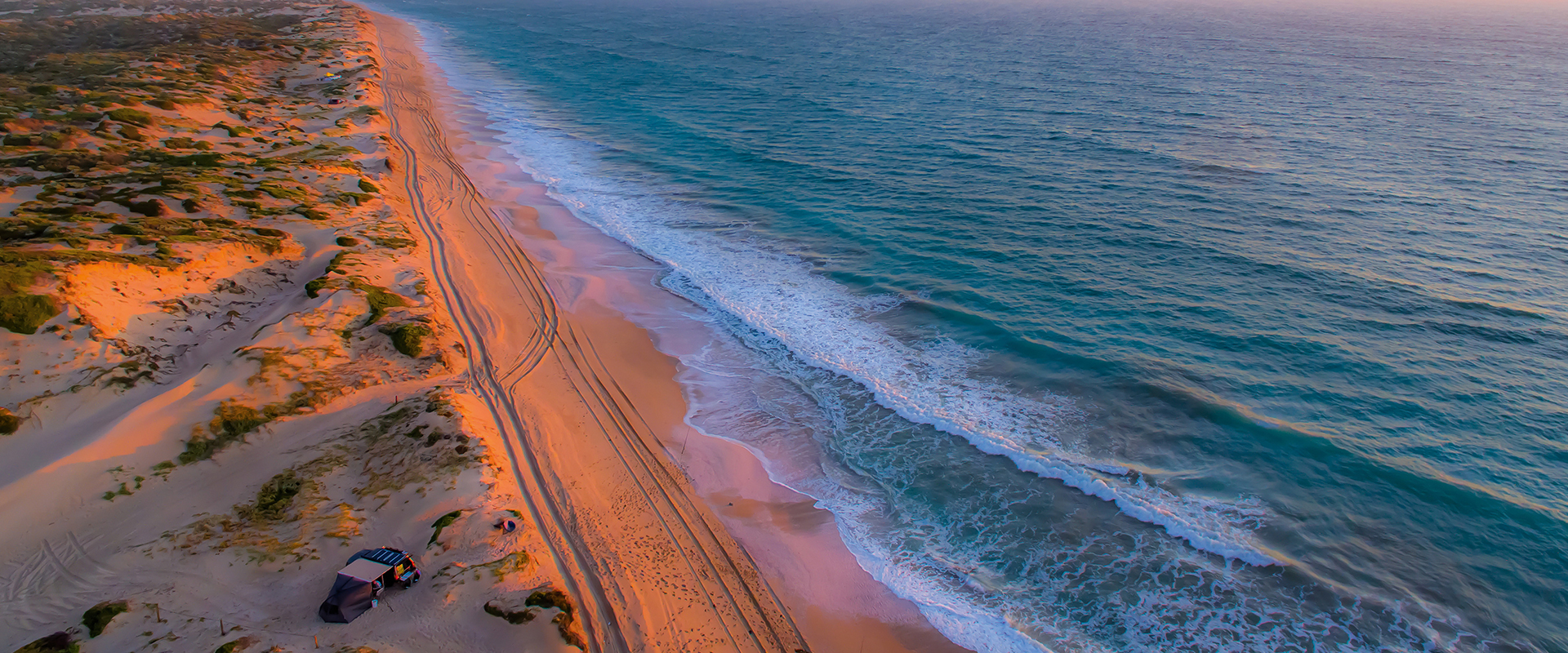 We pass through Salt Creek, the gateway to the southern Coorong, and onto Ninety Mile Beach, a popular surf and fishing spot that’s only accessible by four-wheel-drive. I walk down the beach, my feet sinking in the soft sand and crunching through the thick layer of crushed shells that mirror the ocean’s edge. The moody weather sets the tone for the end of our tour through the Coorong National Park, leaving me wanting more and wondering why we didn’t venture this way more often when we were kids.