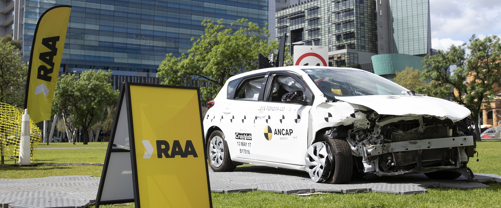 On September 25, RAA showed confronting vision of ANCAP car crash tests and set up 2 crash-test vehicles in Victoria Square to demonstrate the impact of road collisions.