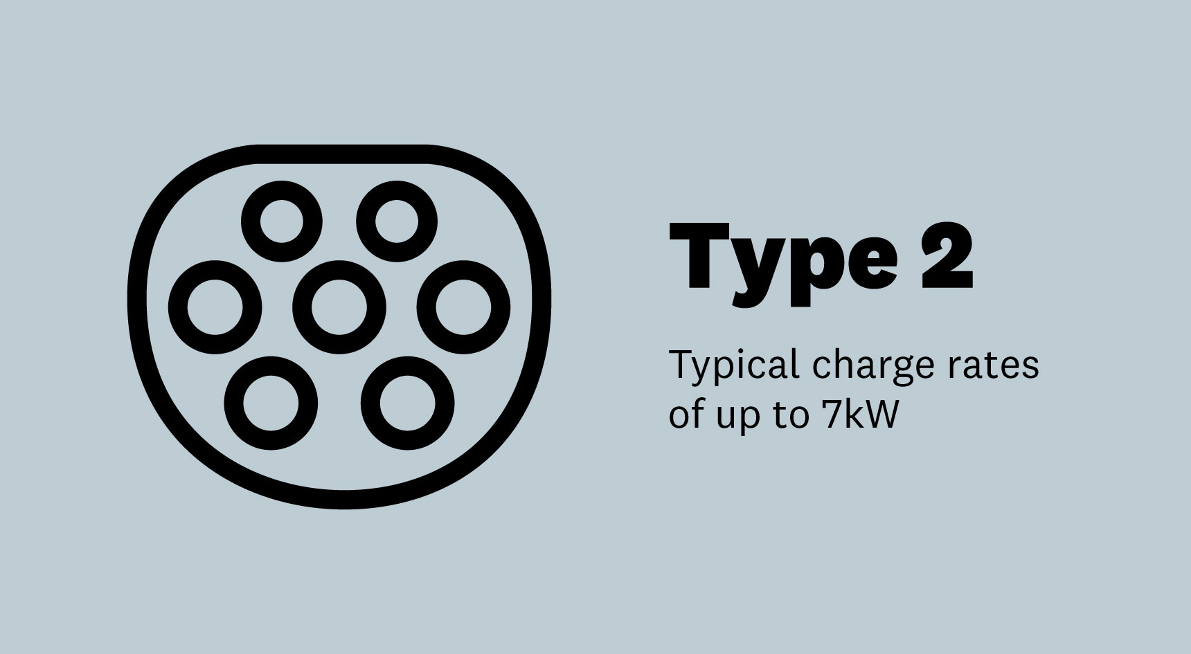 The Type 2 plug is found across the country. The plug has a seven-pin design with up to five power-point pins to support three-phase charging, depending on your vehicle.